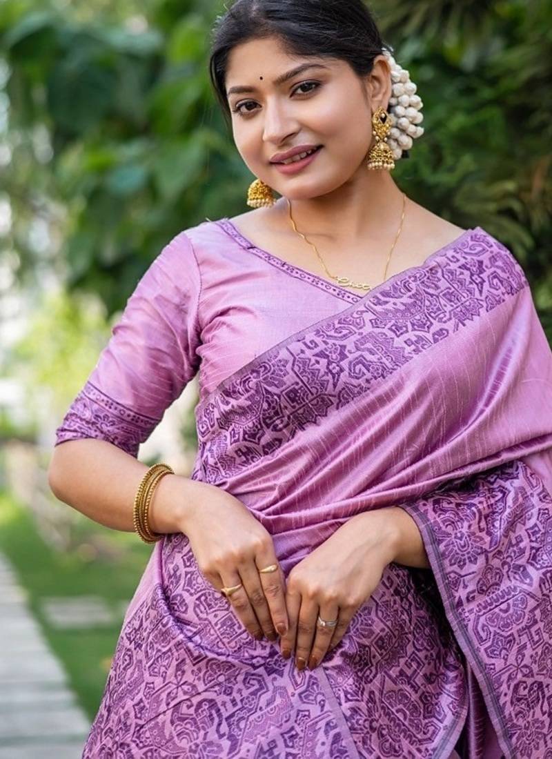 | Product Name | Levender Color Handloom Raw Silk Weaving Pallu Saree | |