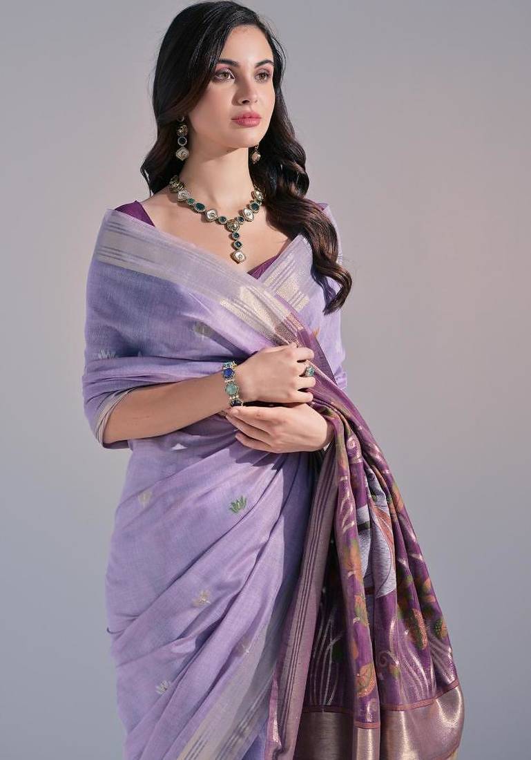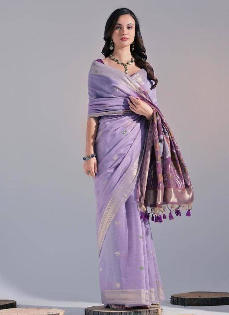 Levender color muga cotton colorfull resham weaving saree