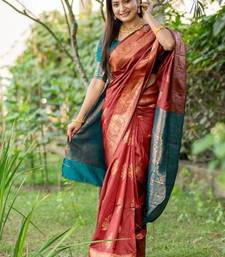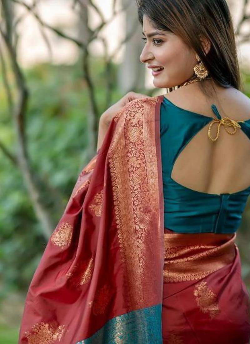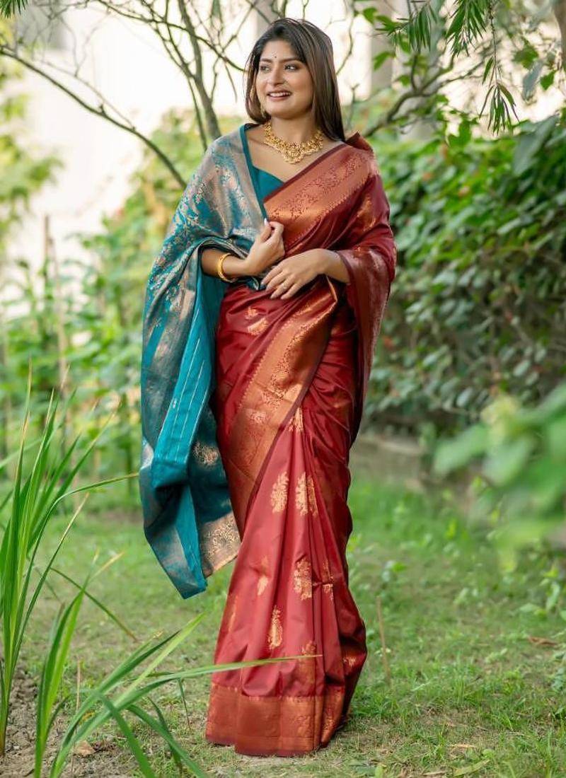 Maroon color banarasi katan silk zari weaving pattu saree