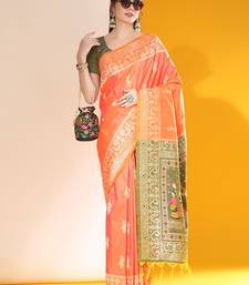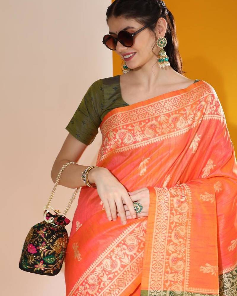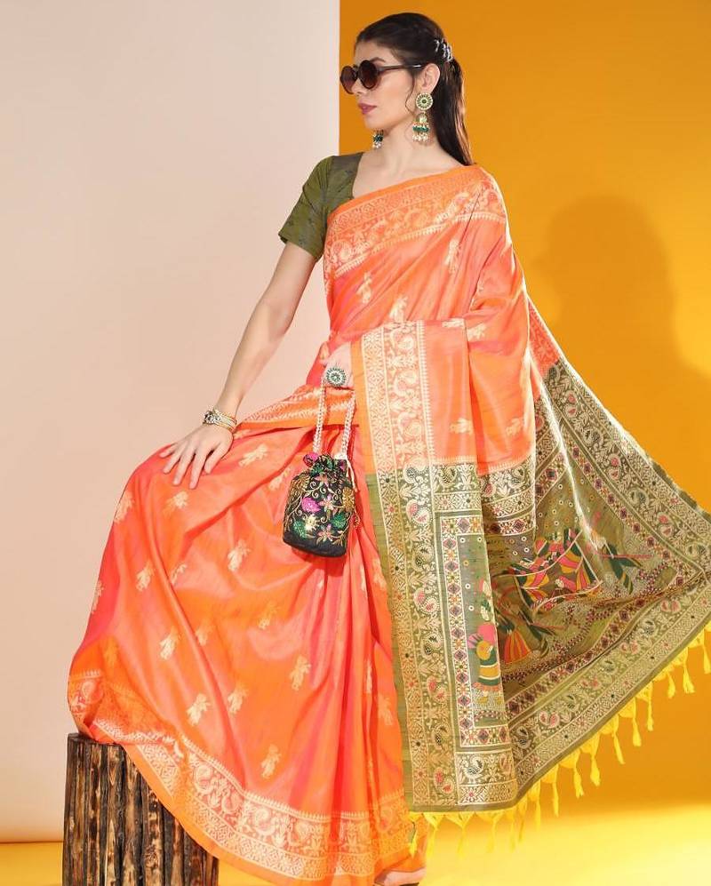 Product Name Orange Color Raw Silk Two Tone Weaving Work Saree