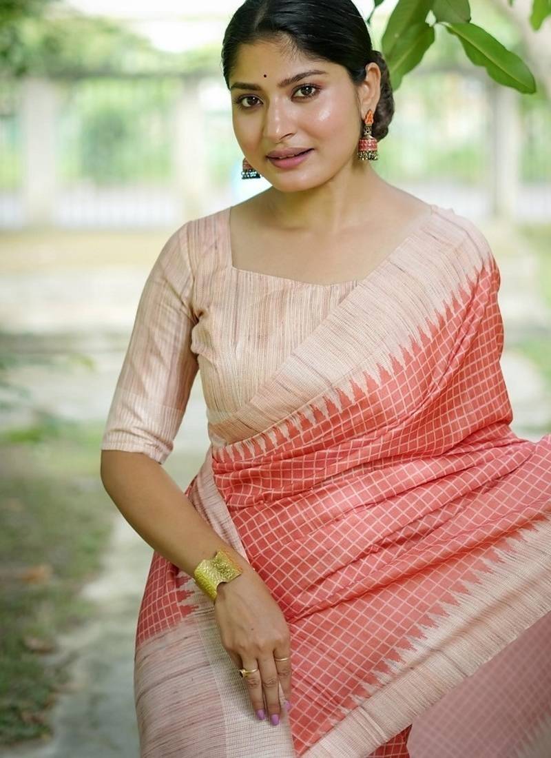 | Product Description | Soft Tussar Silk Saree With All Over Cheks Printed Pattern And Kanth Weaving Contrast Border With Kantha Linning Pallu And Fancy Tassels With Contrast Blouse Piece |
