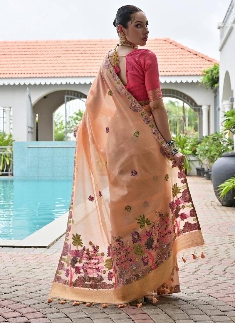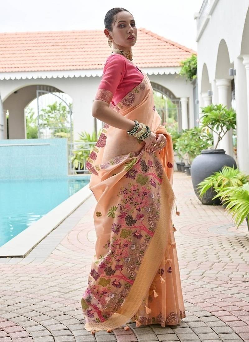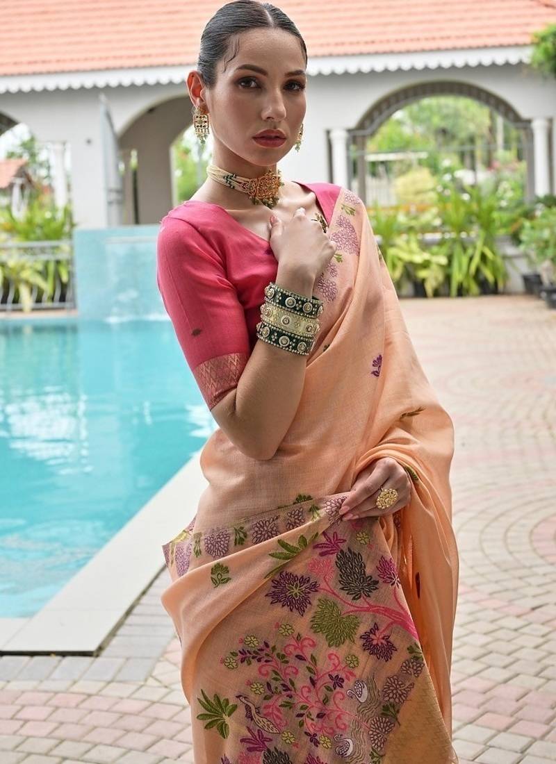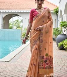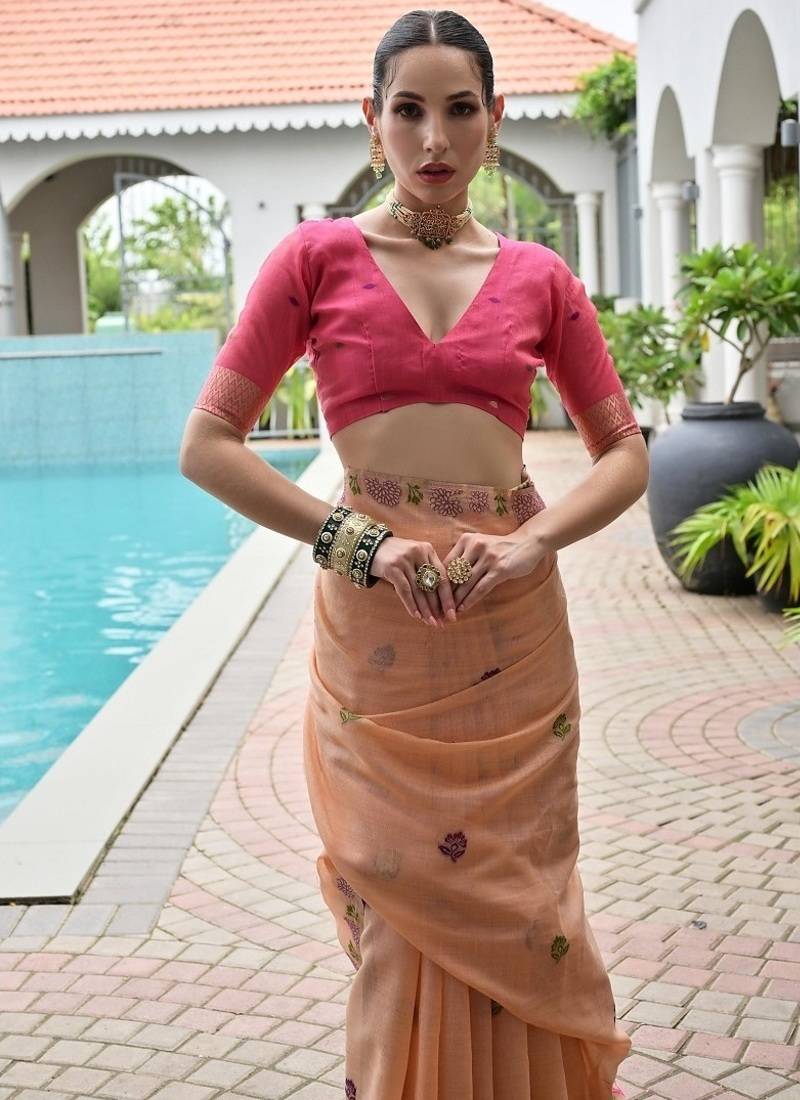 | Product Name | Peach Color Chanderi Cotton Resham Weaving Party Wear Saree | |