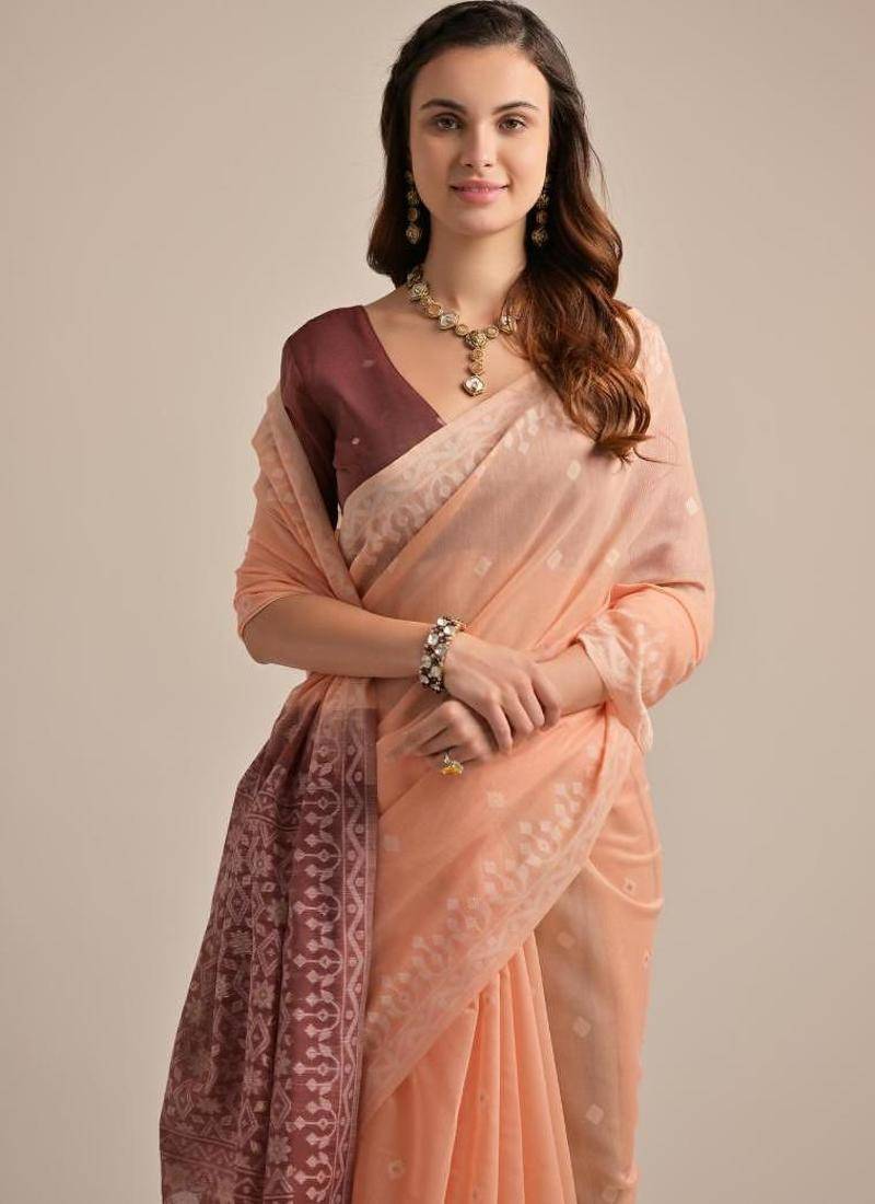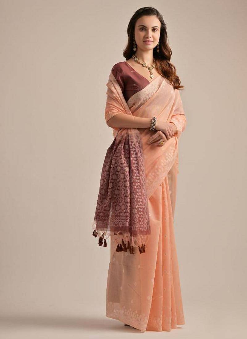 | Product Name | Peach Color Muga Cotton Resham Weaving Concept Saree | |
