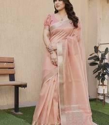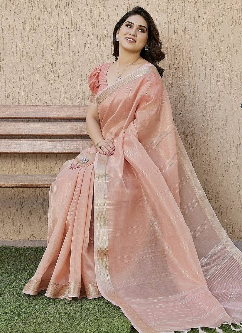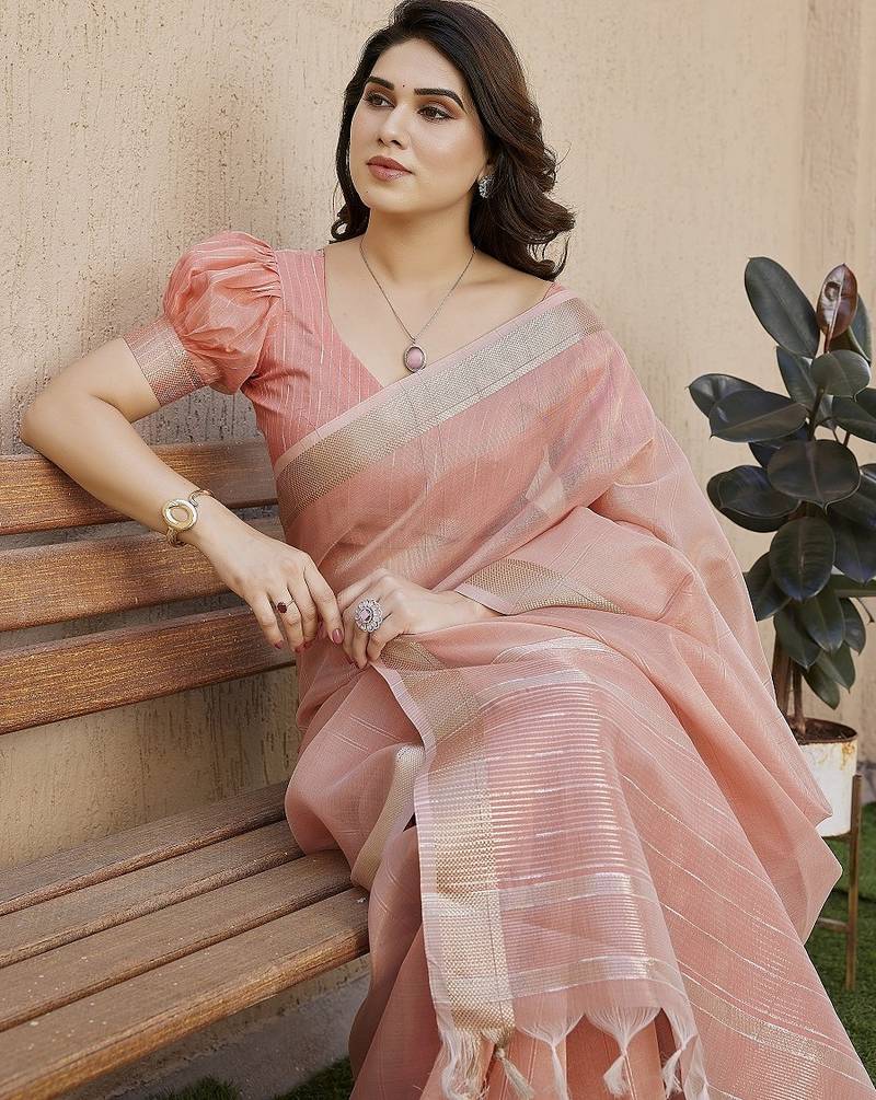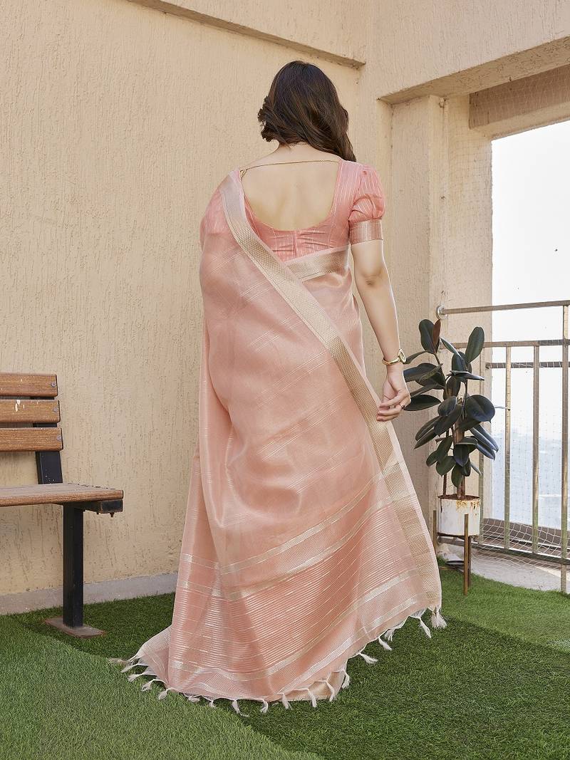 | Product Name | Peach Color Tissue Linen Zari Weaving Border Saree With Blouse | |