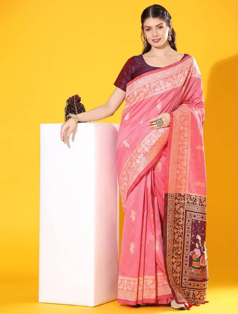 | Product Name | Pink Color Raw Silk Two Tone Weaving Work Saree | |