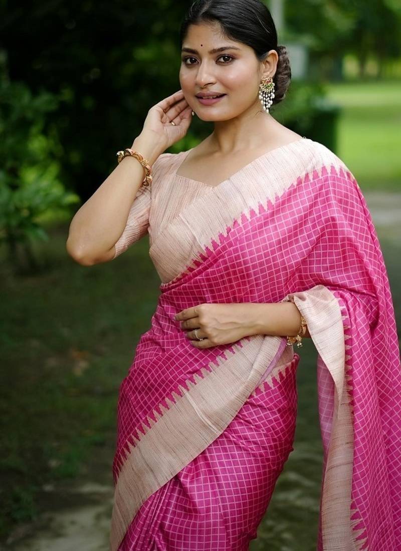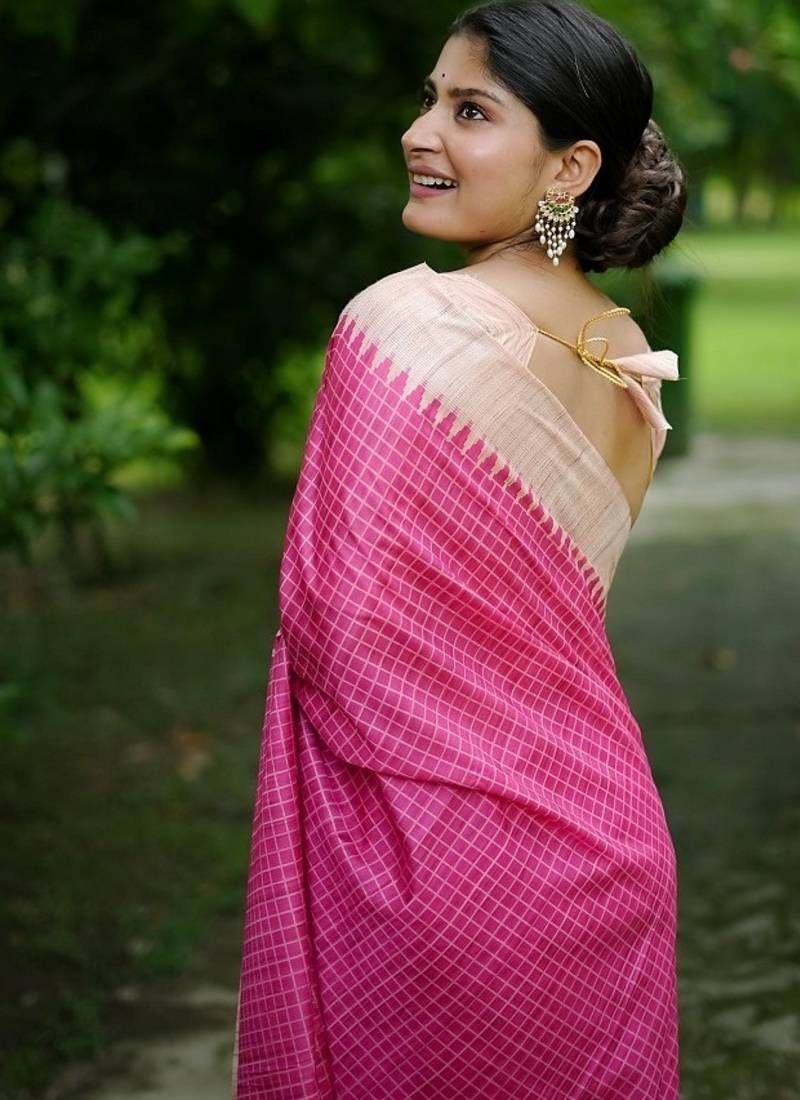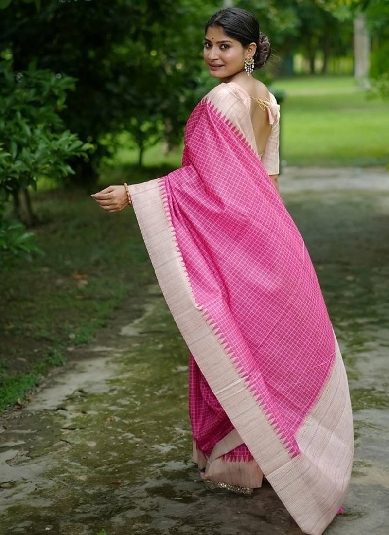 | Product Name | Pink Color Tussar Silk Checks Printed Style Kanth Weaving Saree | |