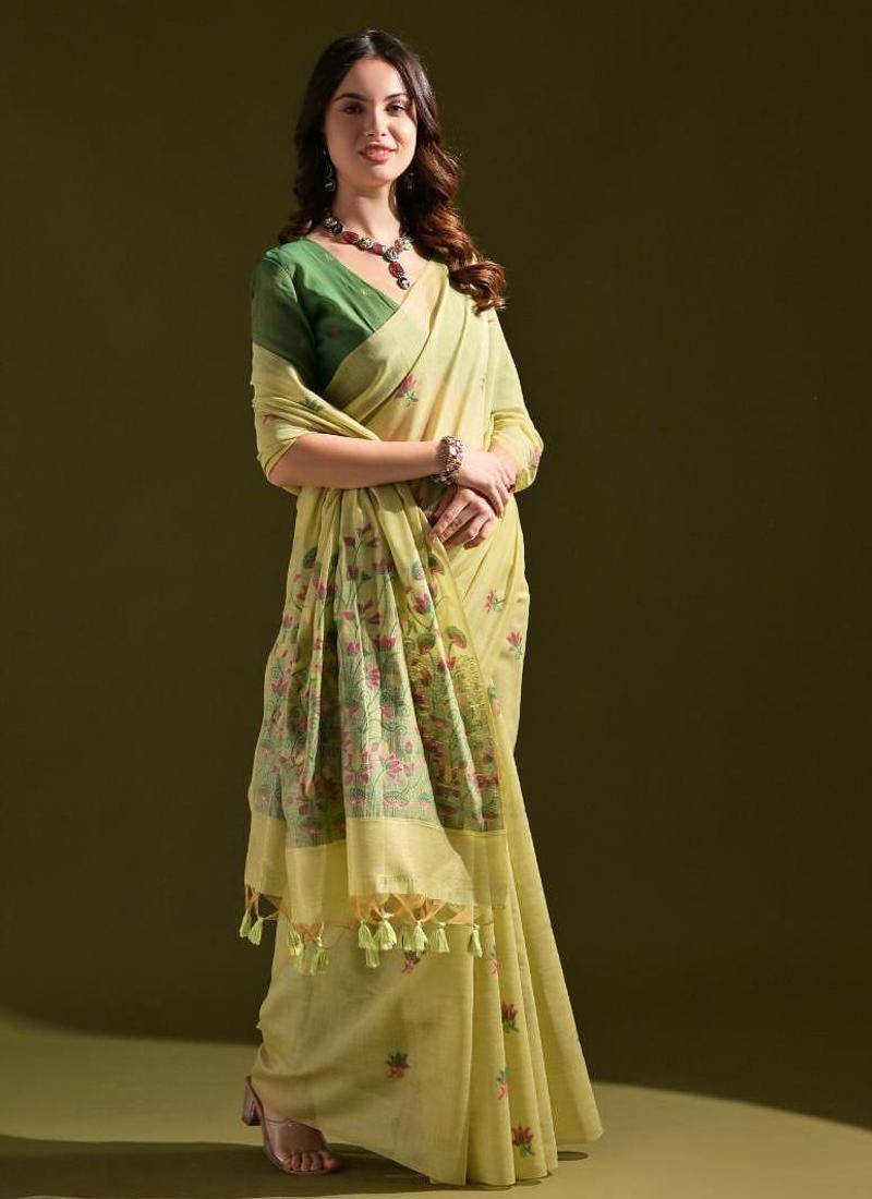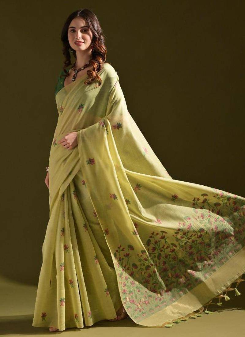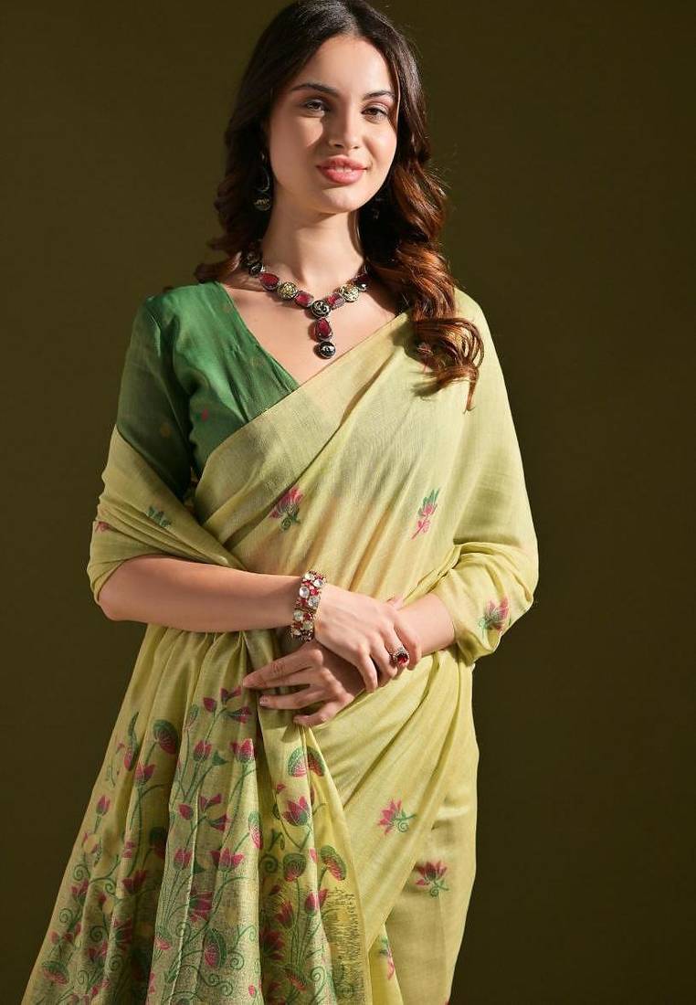 | Product Name | Pista Color Muga Cotton Flower Weaving Concept Saree | |