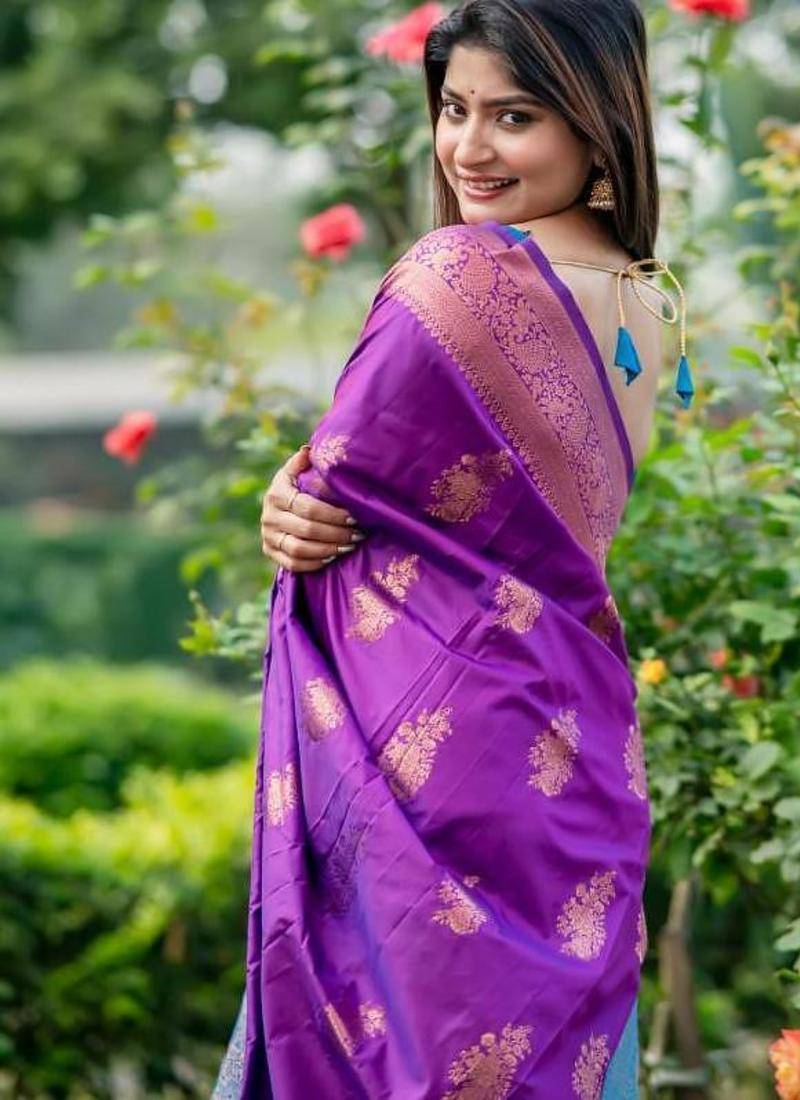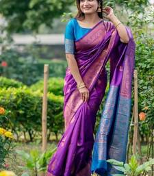 Purple color banarasi katan silk zari weaving pattu saree
