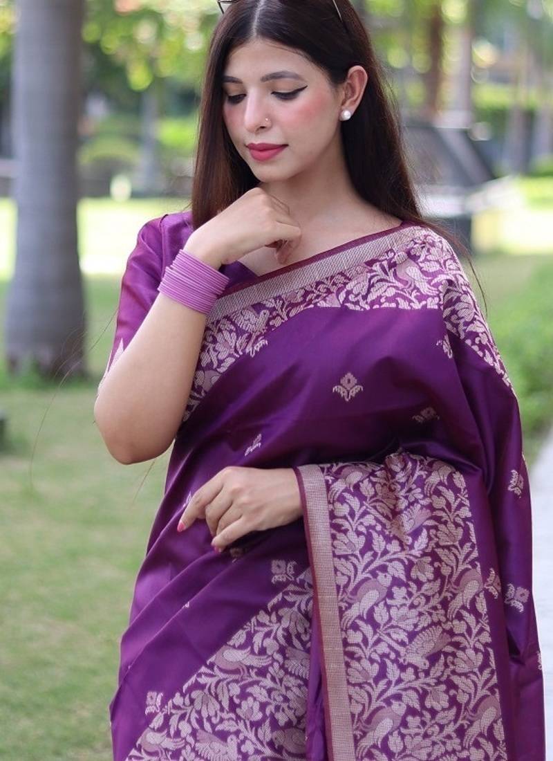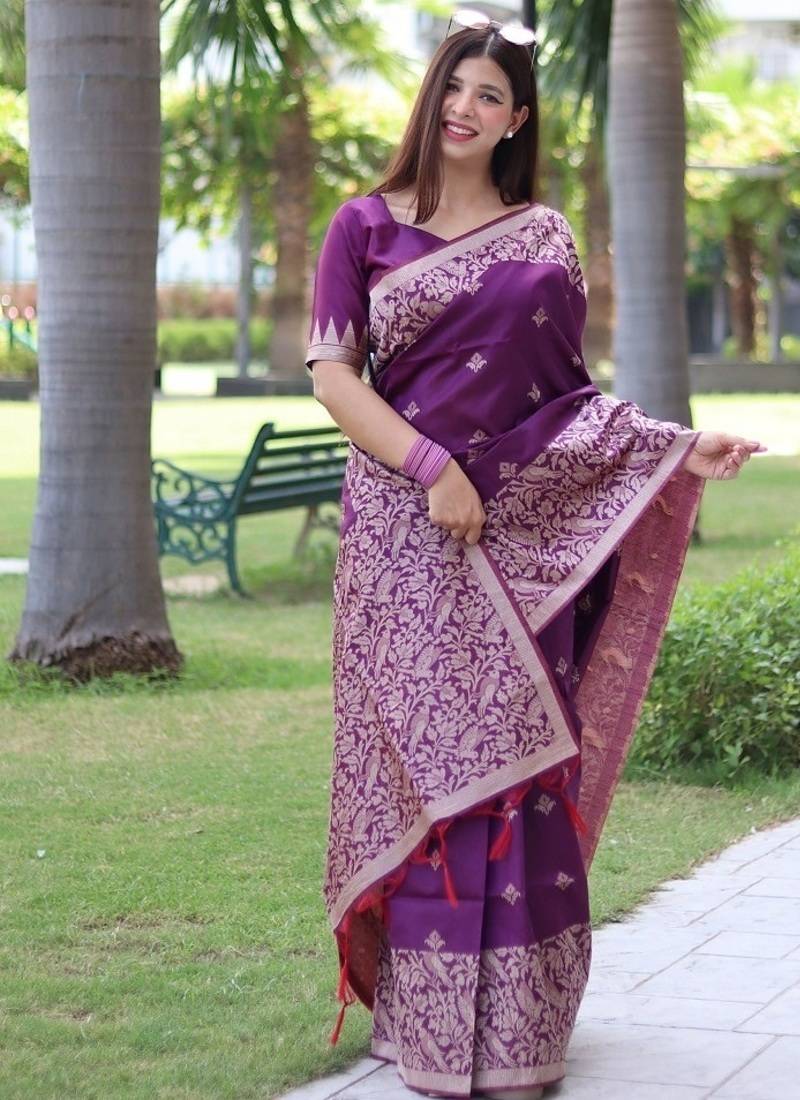 Saree : Color- Purple / Fabric- Silk Blend