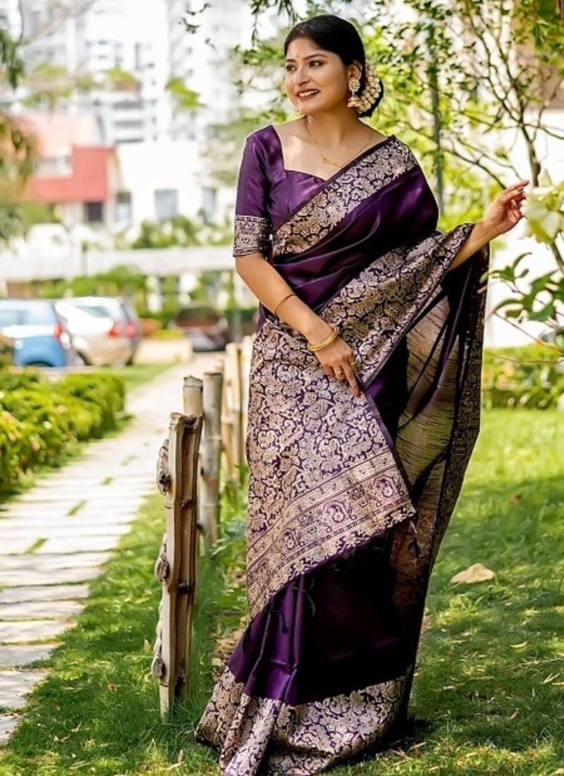 | • | Saree | : | Color- Purple / Fabric- Silk Blend |