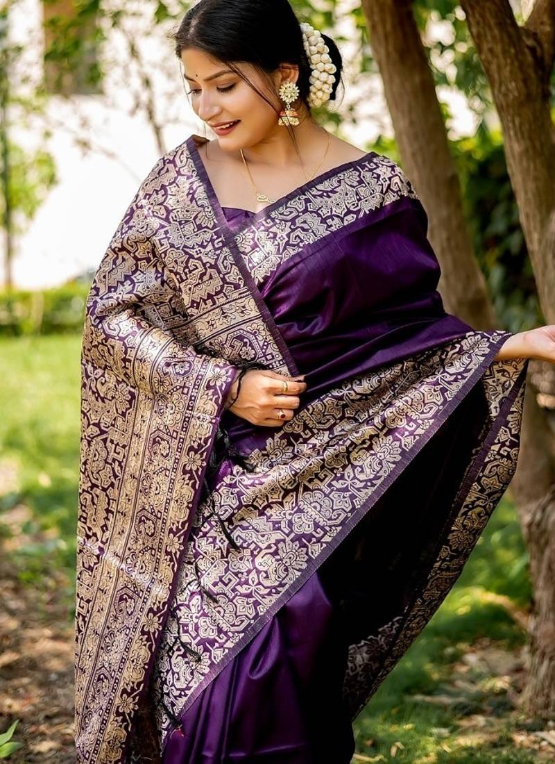 | Product Name | Purple Color Handloom Raw Silk Weaving Pallu Saree | |