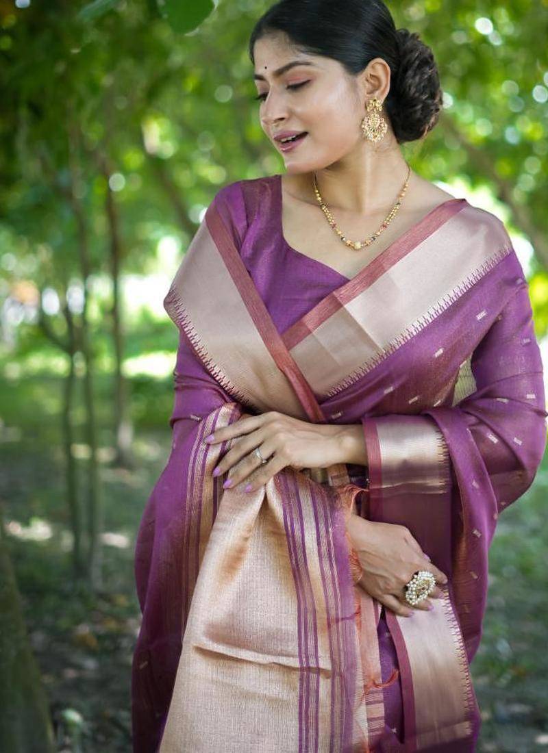 | Product Name | Purple Color Kalyani Silk Zari Weaving Butti & Border Saree | |