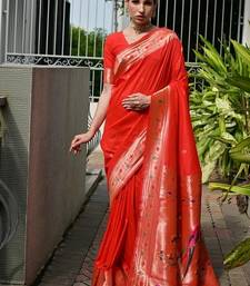 Red color banarasi silk paithani meena zari weaving saree