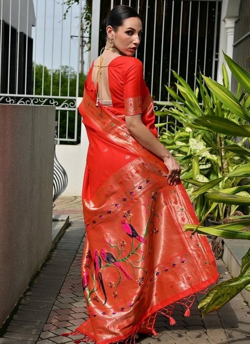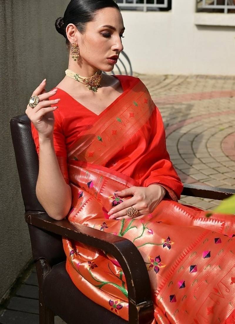 Product Name Red Color Banarasi Silk Paithani Meena Zari Weaving Saree