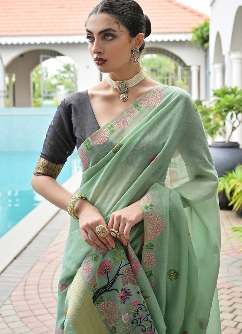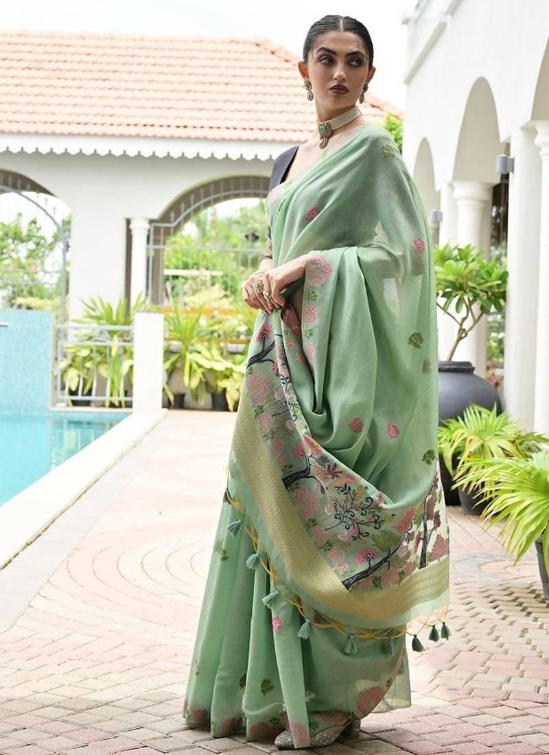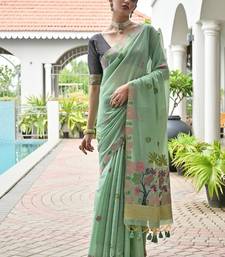 Product Name Sea Green Color Chanderi Cotton Resham Weaving Party Wear Saree
