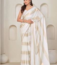 White color satin silk with foil patta & zircon handwork border saree