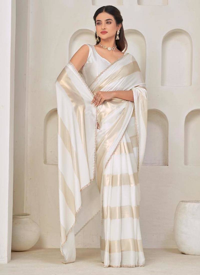 | Product Name | White Color Satin Silk With Foil Patta & Zircon Handwork Border Saree | |