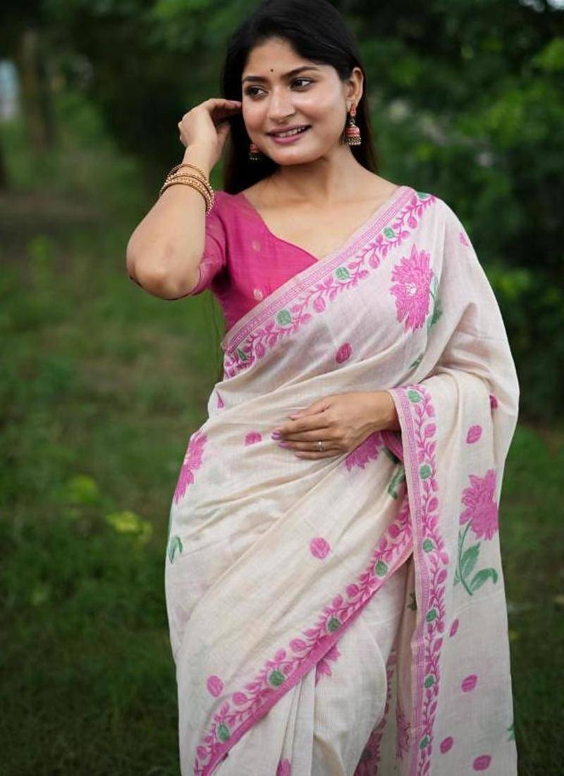 | Product Name | White & Pink Color Muga Cotton Jamdani Contrast Weaving Saree | |