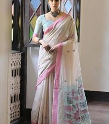 White & pink color muga cotton warli weaving pallu-border saree