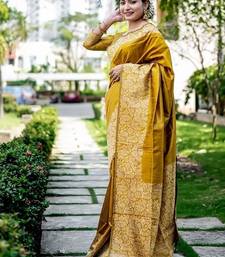 Yellow color handloom raw silk weaving pallu saree