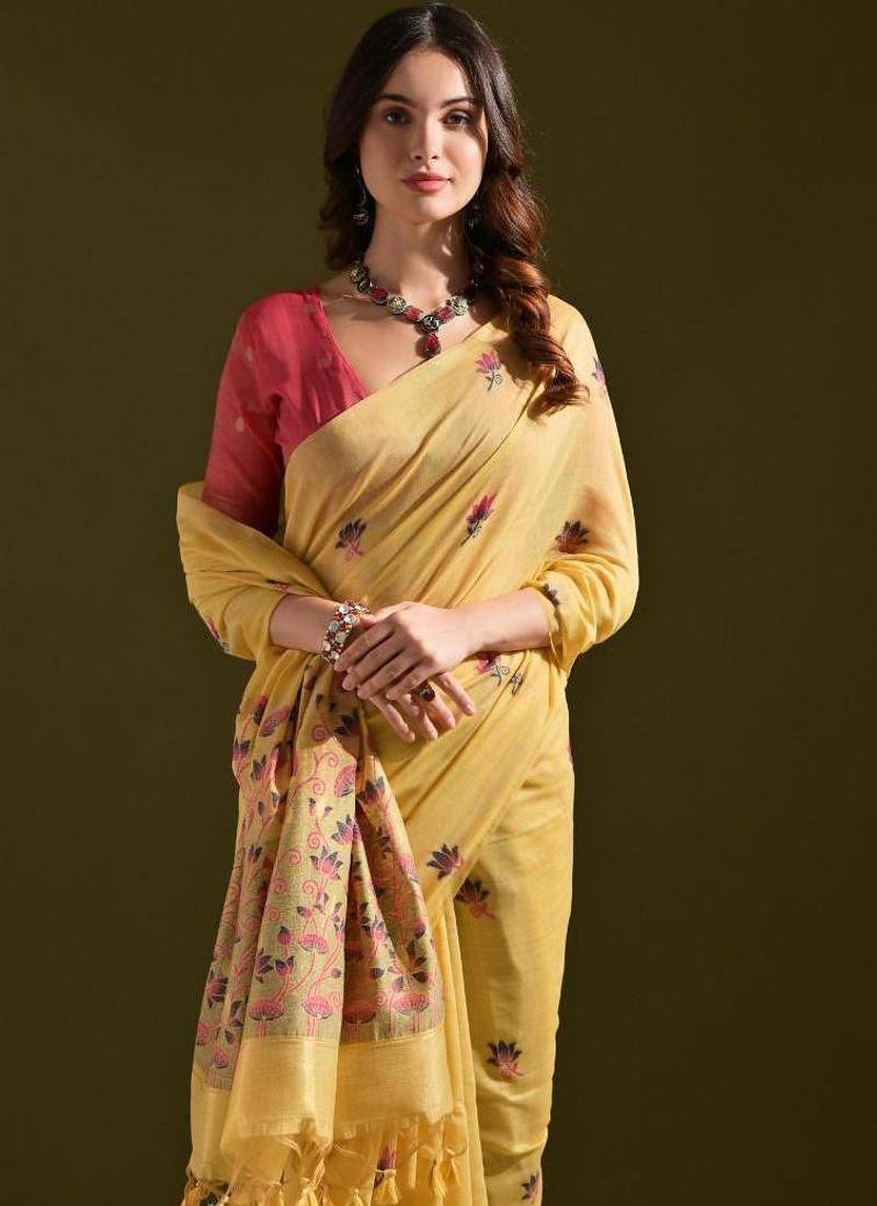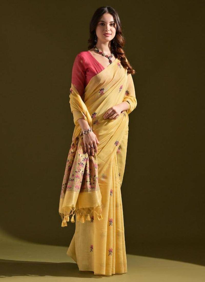 | Product Name | Yellow Color Muga Cotton Flower Weaving Concept Saree | |