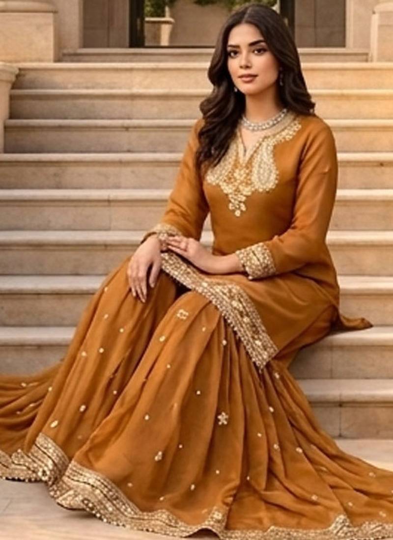 | Product Name | Beige Chnaderi Silk Thread With Sequence Designer Plazzo Suit | |