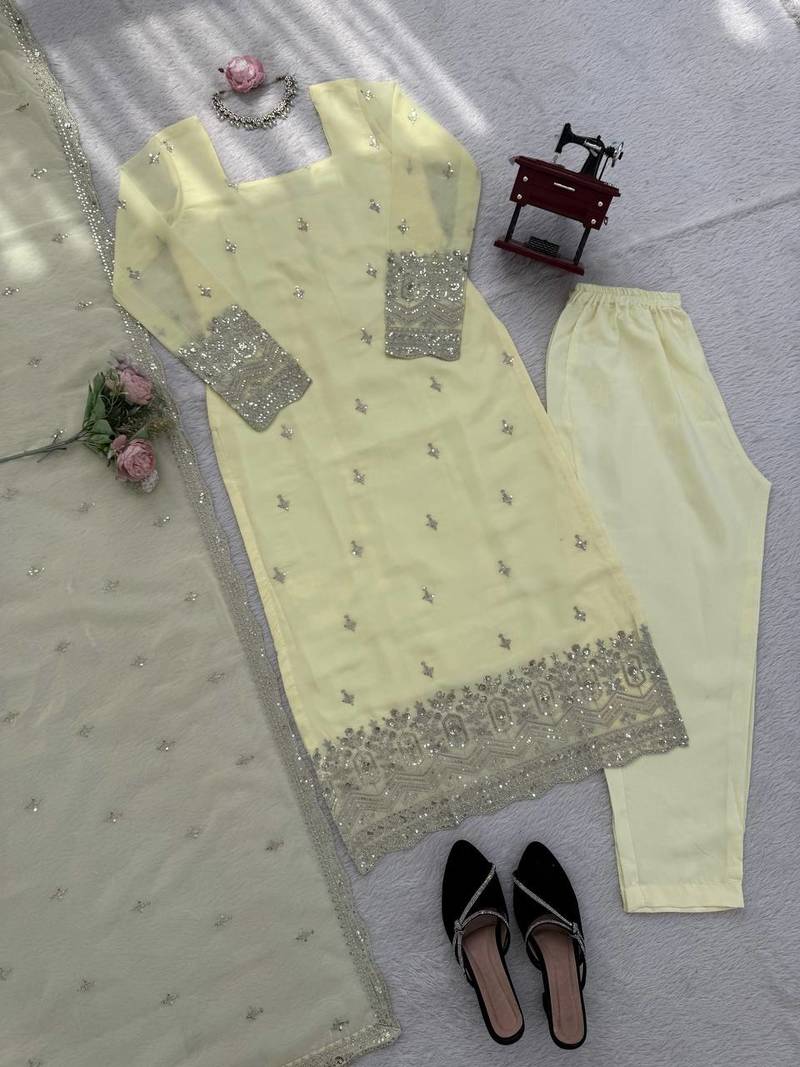 Product Name Cream Georgette Thread With Sequence Designer Salwar Suit