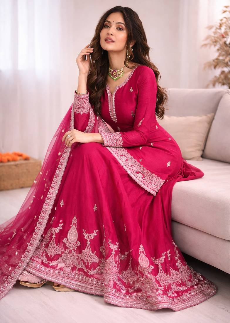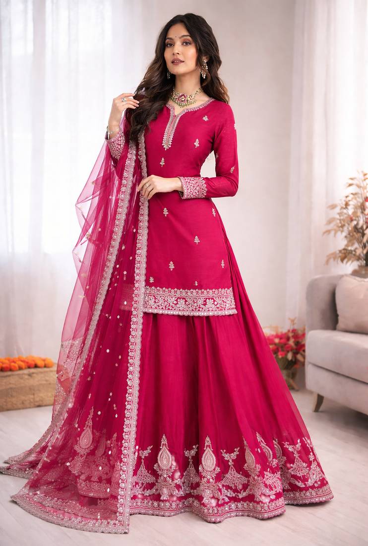 | Product Name | Pink Chinon Silk Thread Sequence Plazzo Suit | |