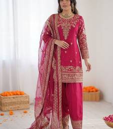| Product Name | Pink Crepe Silk Thread Sequence Farshi Salwar Suit | |