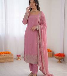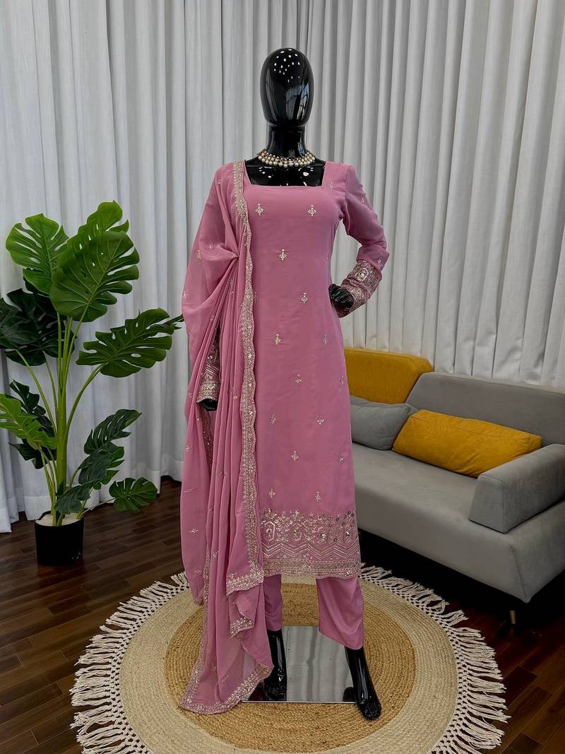 Pink georgette thread with sequence designer salwar suit stitched