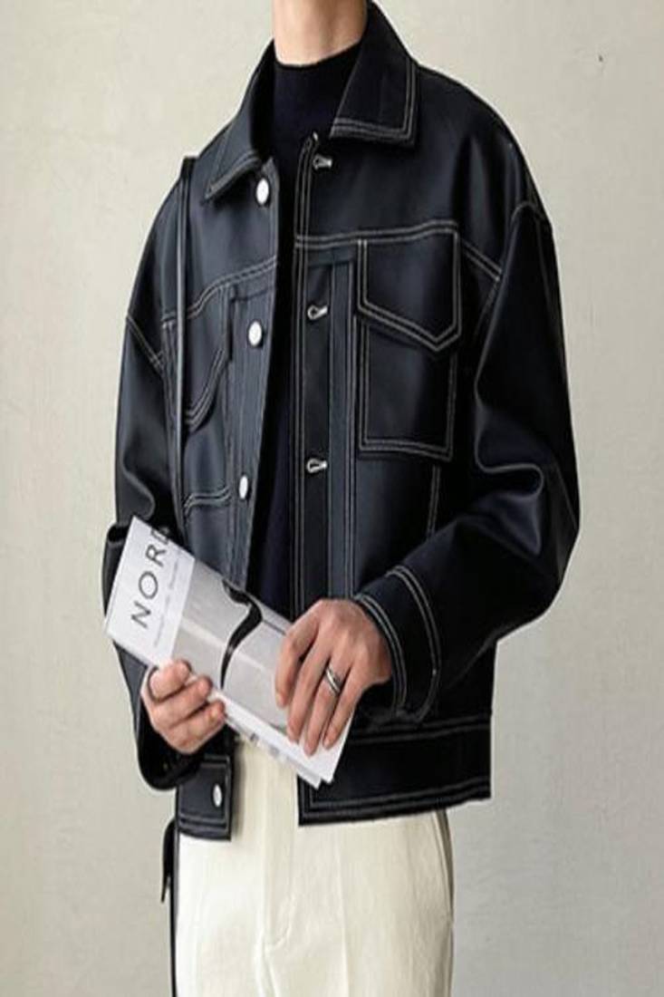 | Product Name | Korean Streetwear Black Genuine Lambskin Leather Jacket Trucker Style Jacket | |