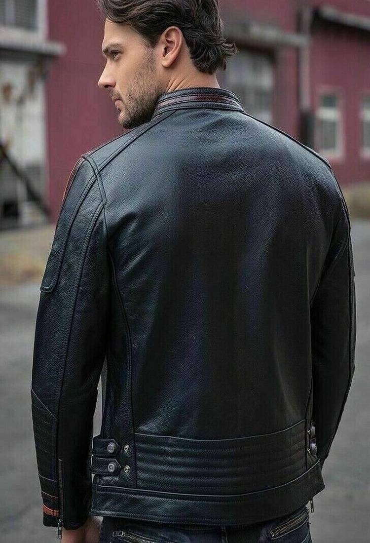 | Product Name | Men's Black Genuine Lambskin Leather Jacket Brown Strip & Café Racer Biker Style | |