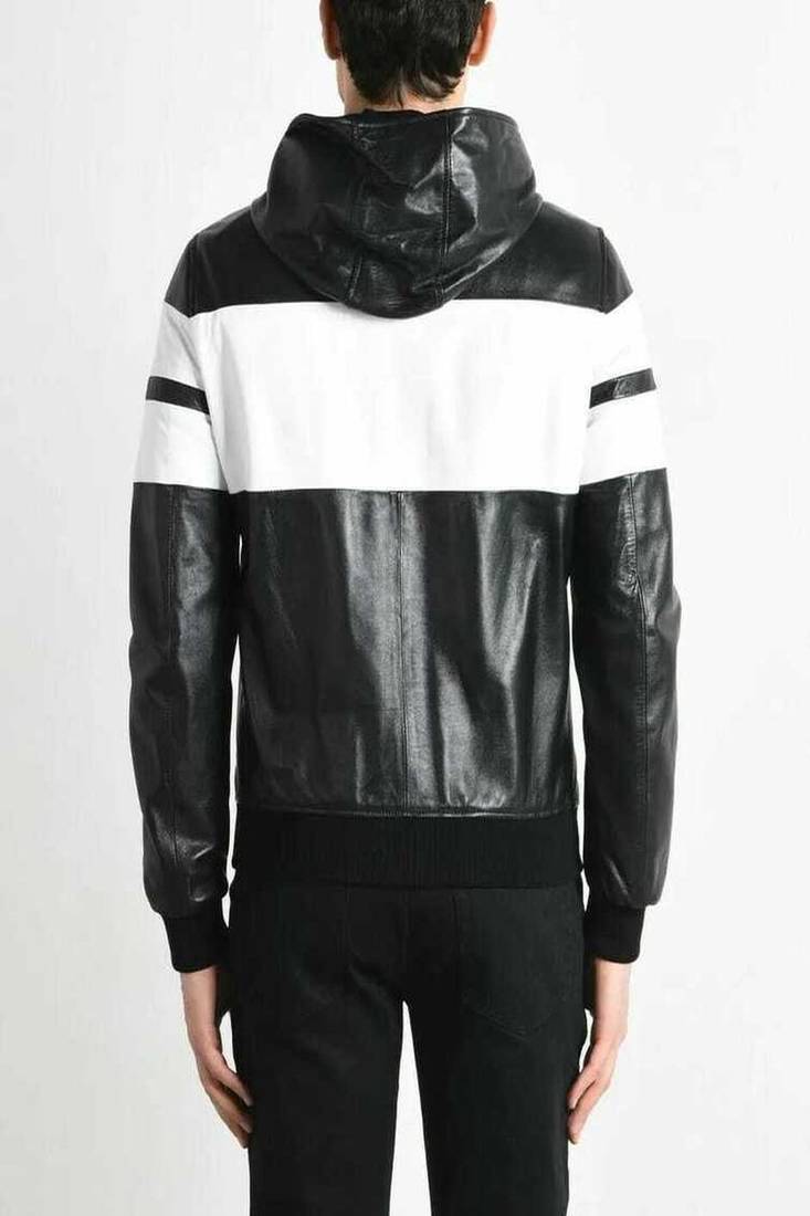 | Product Name | Men's Black & White Lambskin Leather Jacket Simple Ribb Cuffs Motorcycle Biker Style | |