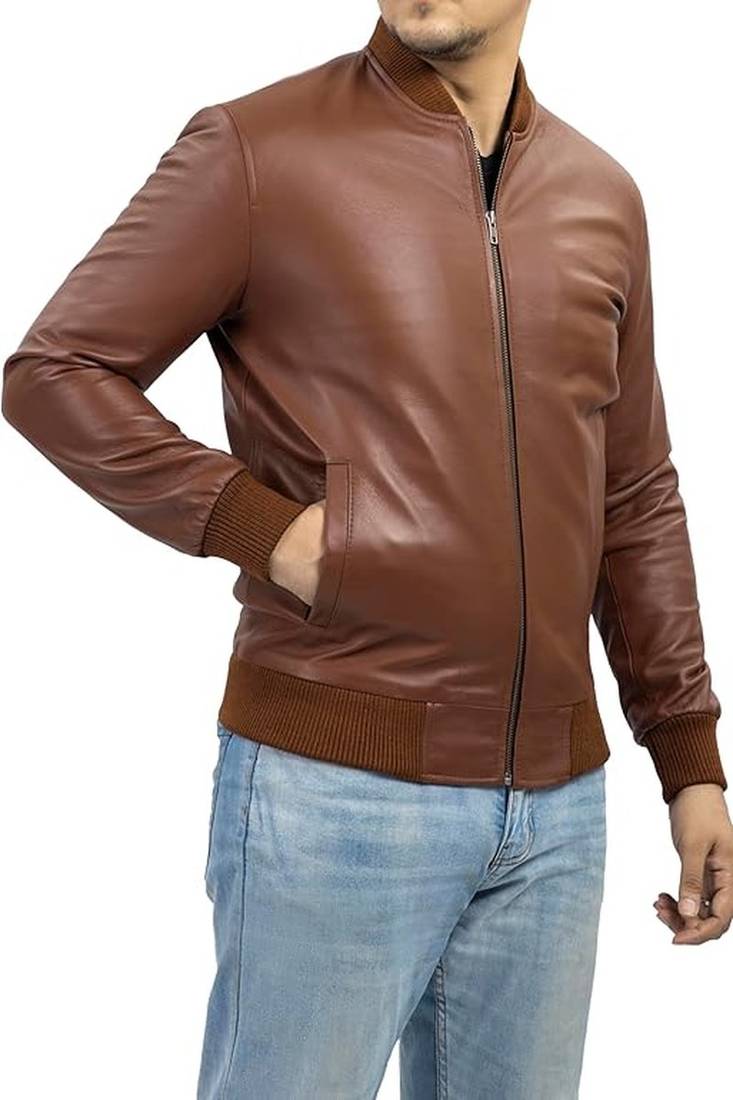 | Product Name | Men's Brown Lightweight Lambskin Leather Jacket Ribbed Cuff Style | |