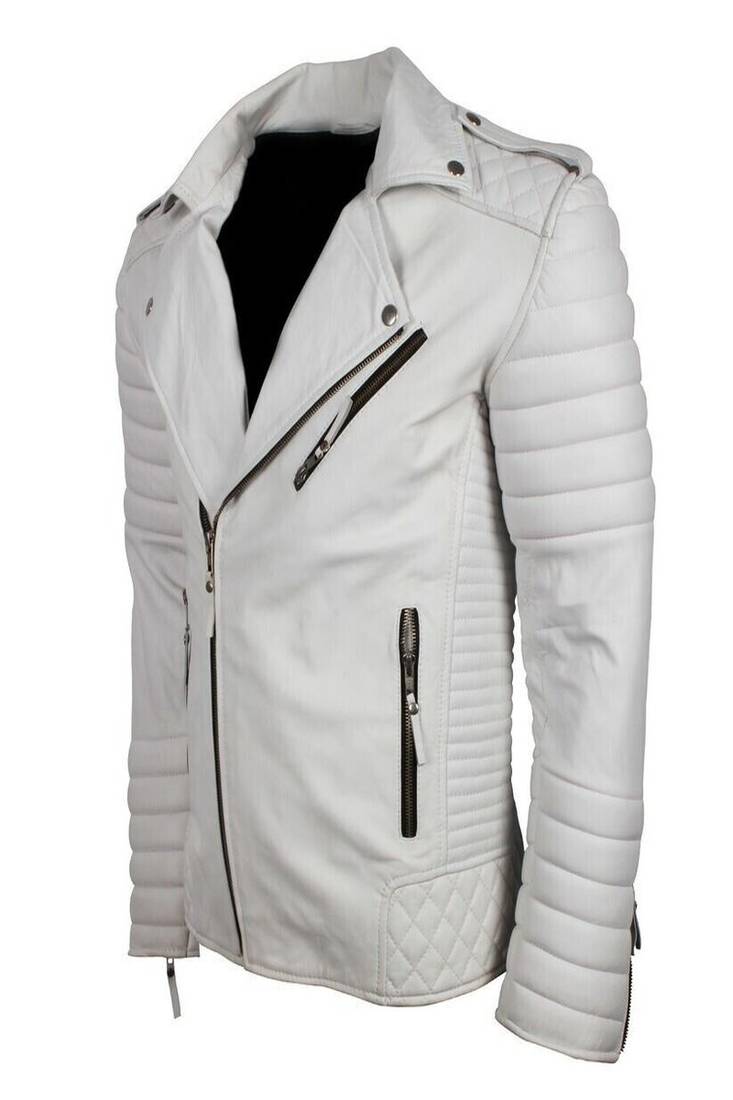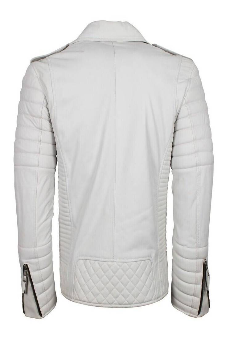 | Product Name | Men's Off White Genuine Lambskin Leather Jacket Multiple Zipper & Quilterd Shoulder Biker Style | |