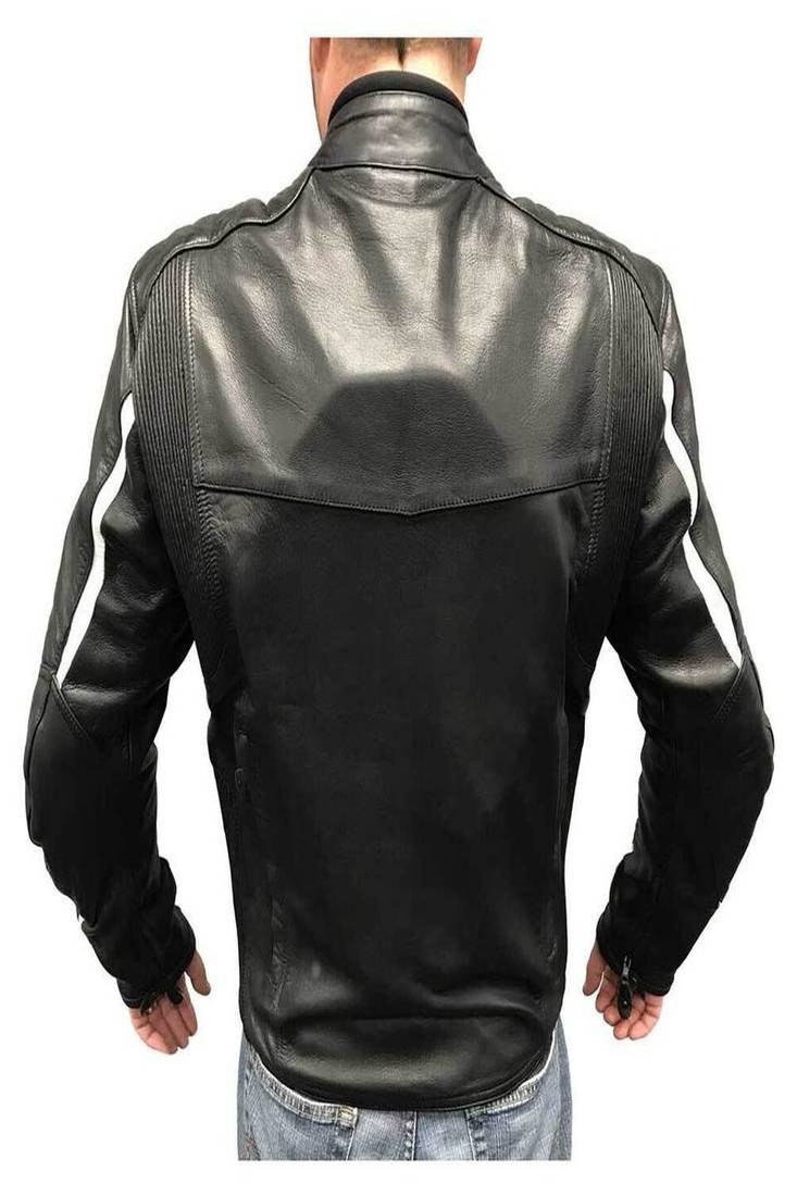 | Product Name | Men'sblack & White Striped Goat Skin Leather Motorcycle Jacket, Zip Café Racer Style | |