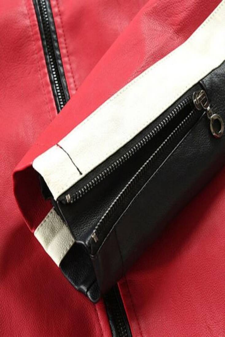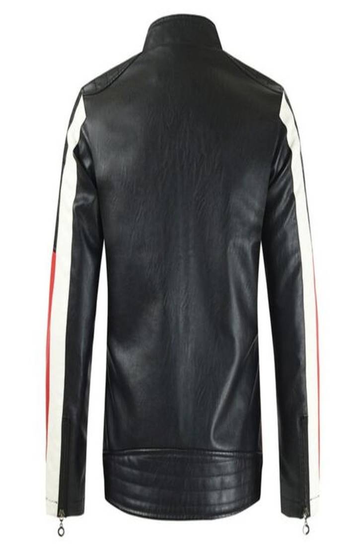 Men’s black genuine leather jacket – multi color casual style with zipper detail