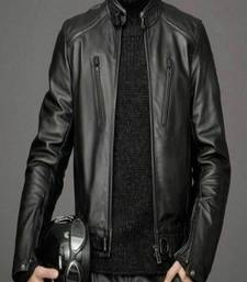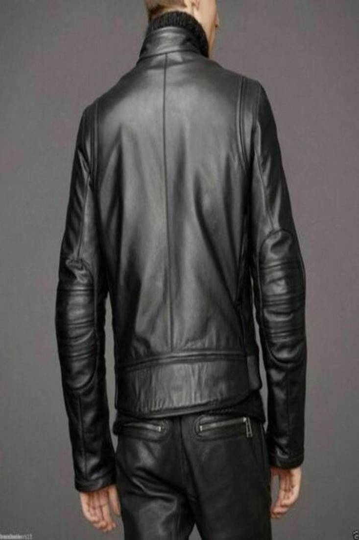 | Product Name | Men’s Black Leather Jacket –Straight Zip Biker Style Cafe Racer Collar | |