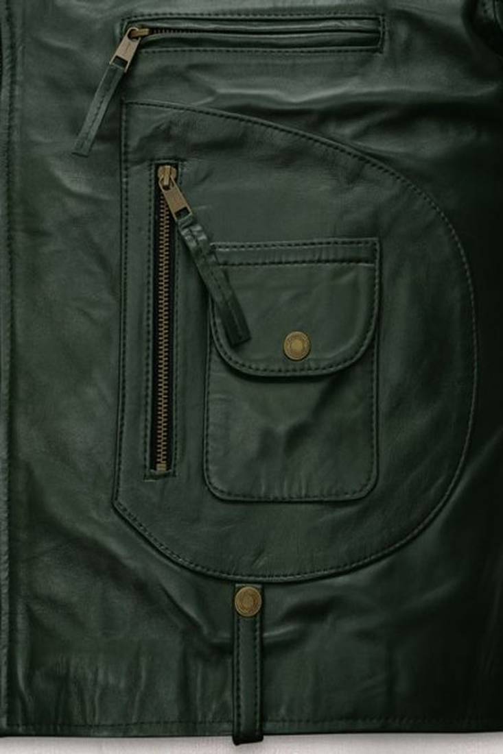 Men’s dark green leather jacket – zip-up biker jacket chain style
