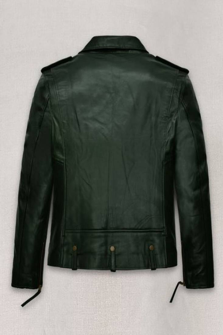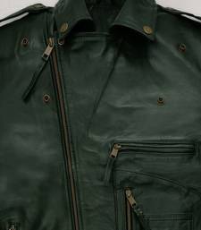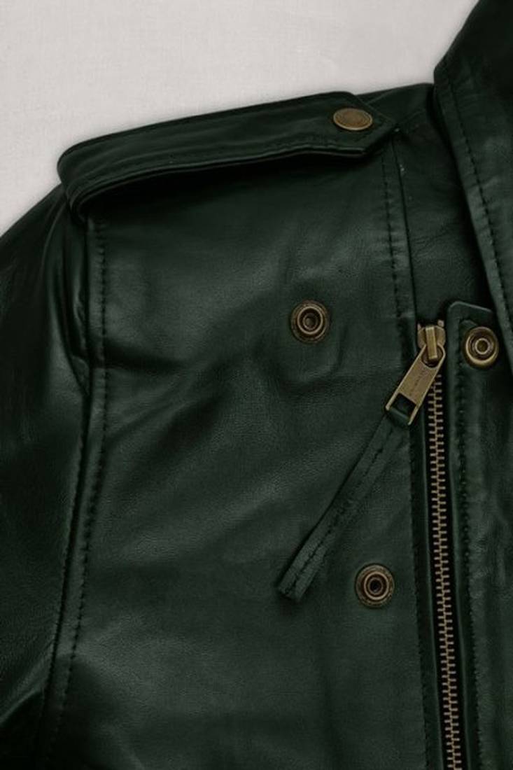 | Product Name | Men’s Dark Green Leather Jacket – Zip Up Biker Jacket Chain Style | |