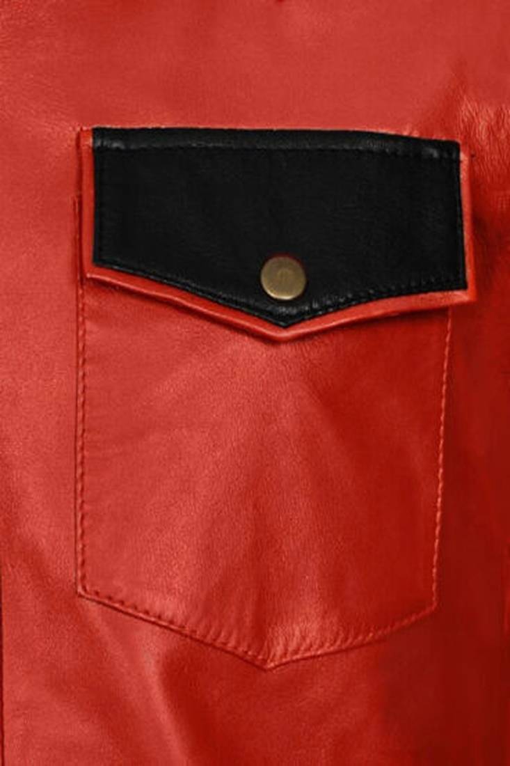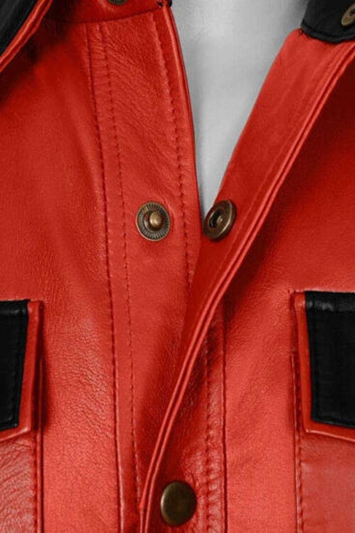 | Product Name | Men’s Red & Black Lambskin Leather Jacket Button Pocket Café Racer Biker Style | |