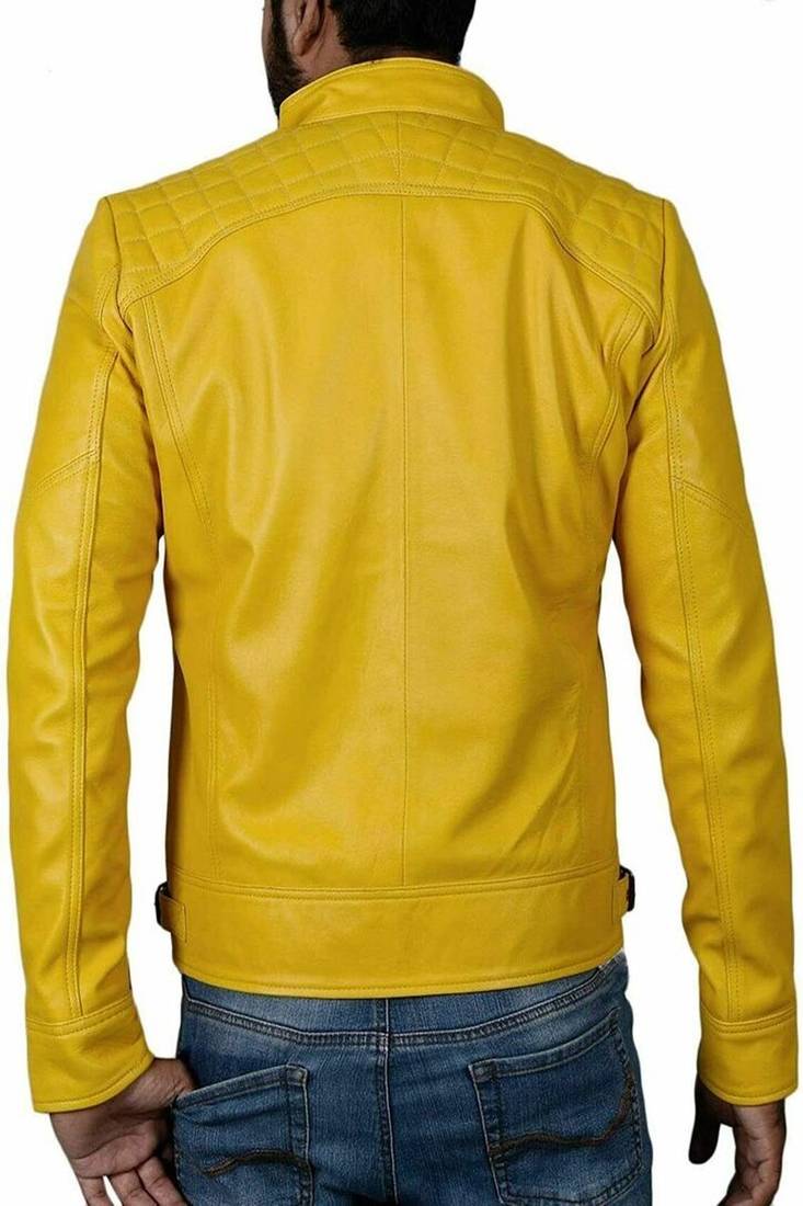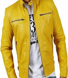 | Product Name | Men’s Simple Yellow Lambskin Leather Jacket Straight Zip & Café Racer Biker Style | |
