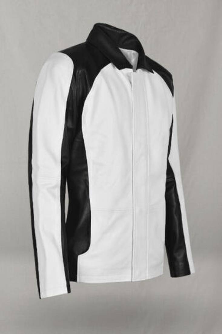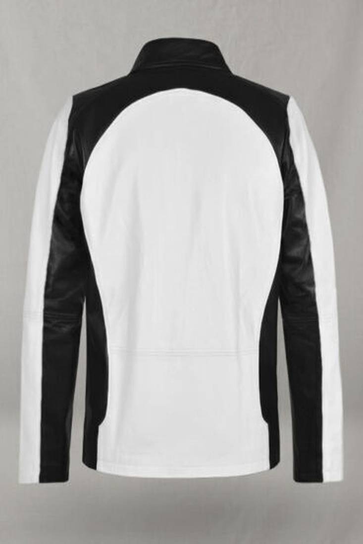 | Product Name | Men’s White & Black Lambskin Leather Jacket Simple Motorcycle Biker Style | |