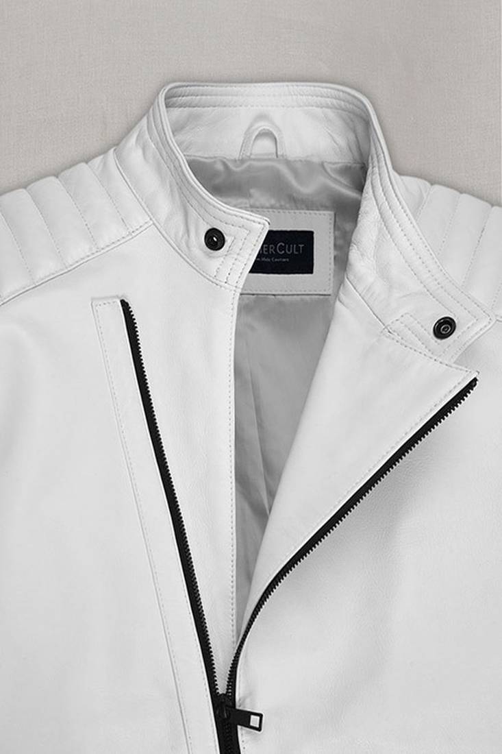 | Product Name | Men’s White Leather Biker Jacket Crosen Chain– Quilted Hand Style | |