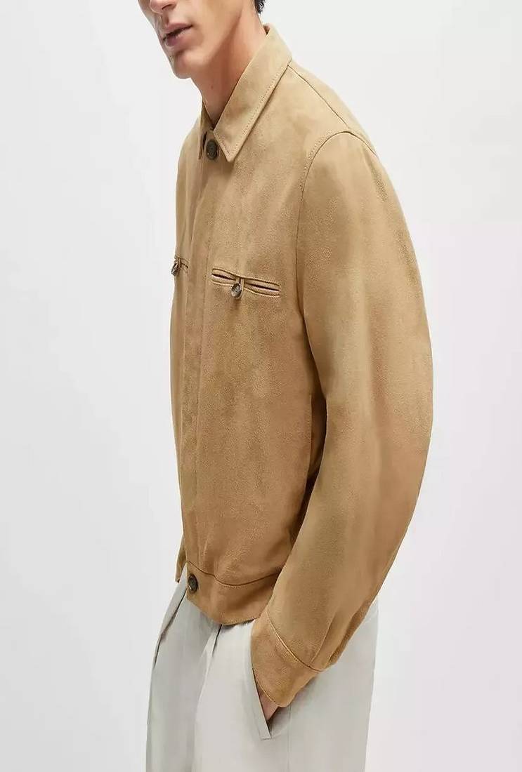 | Product Name | Men’s Yellow Genuine Leather Jacket –Velvet Slim Fit Zip Up Coat | |