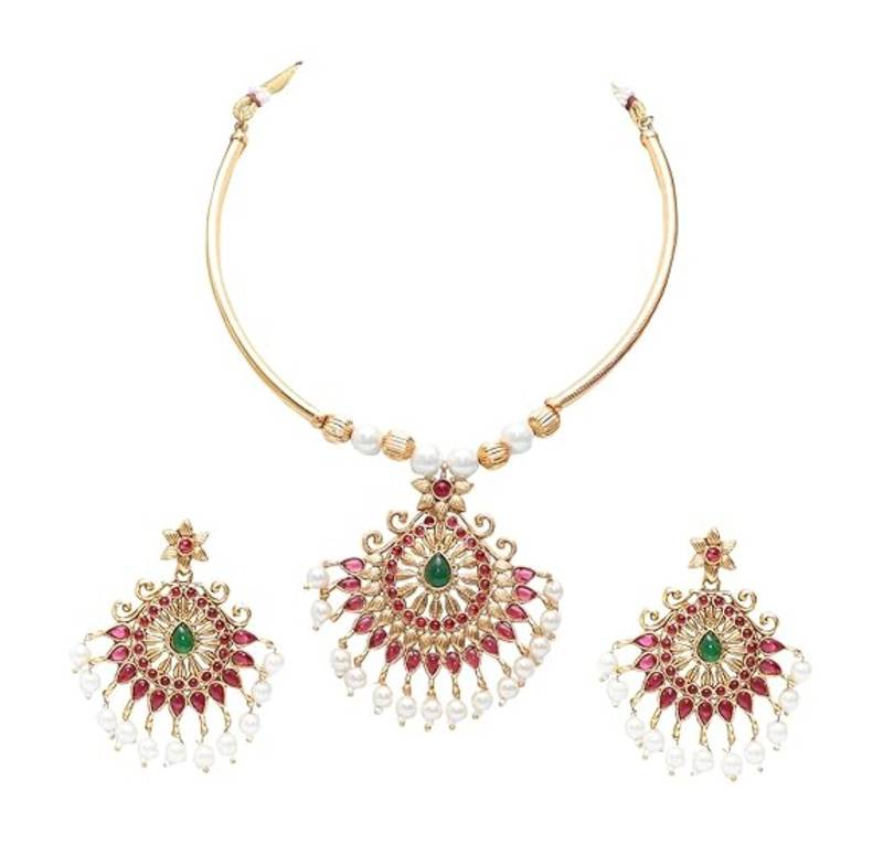 | Product Name | Maroon Green Stone Studded Short Necklace Set | |