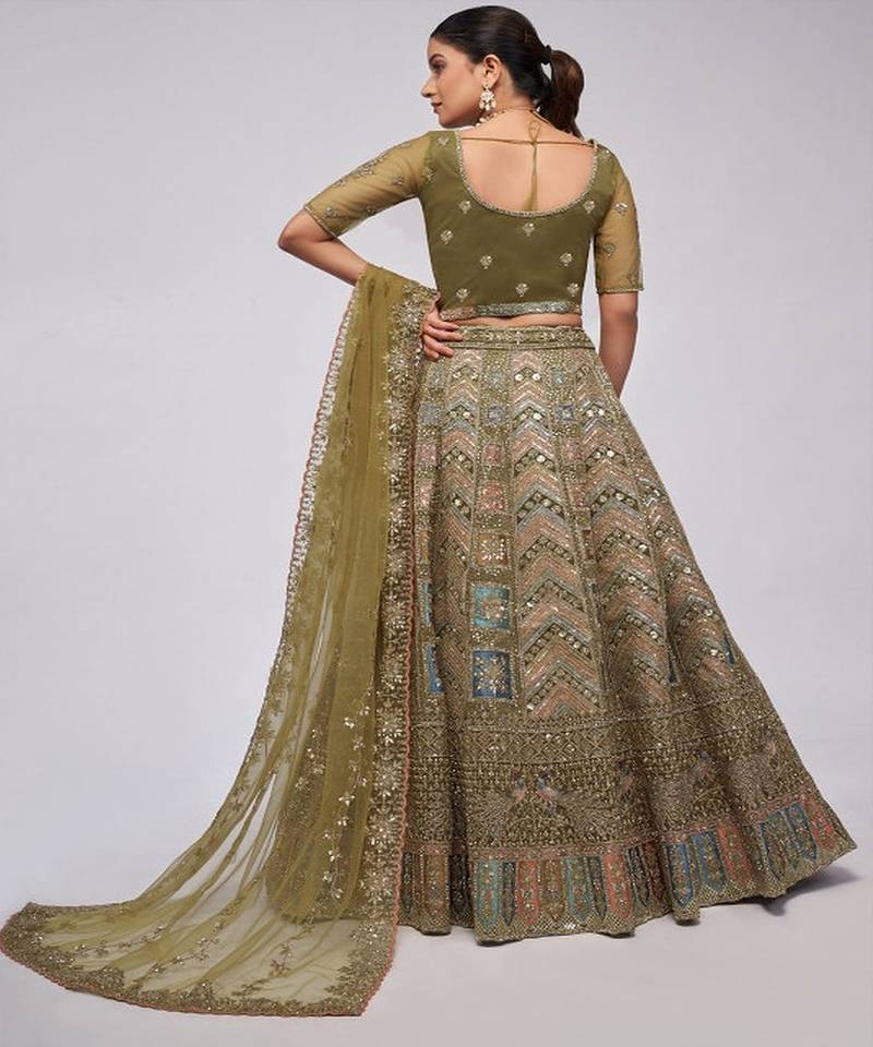 Embroidered beads and stones semi stitched lehenga & unstitched blouse with dupatta