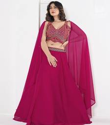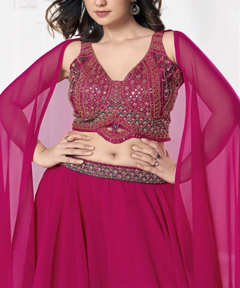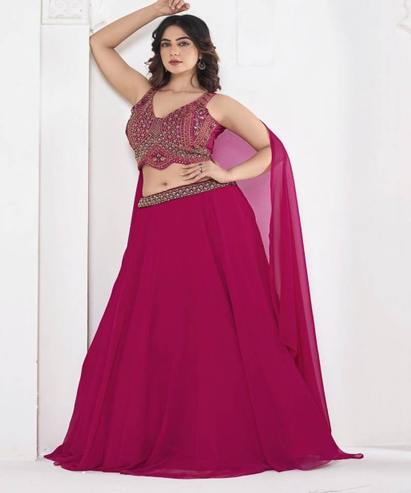 Embroidered v neck semi stitched lehenga & ready to wear blouse with dupatta