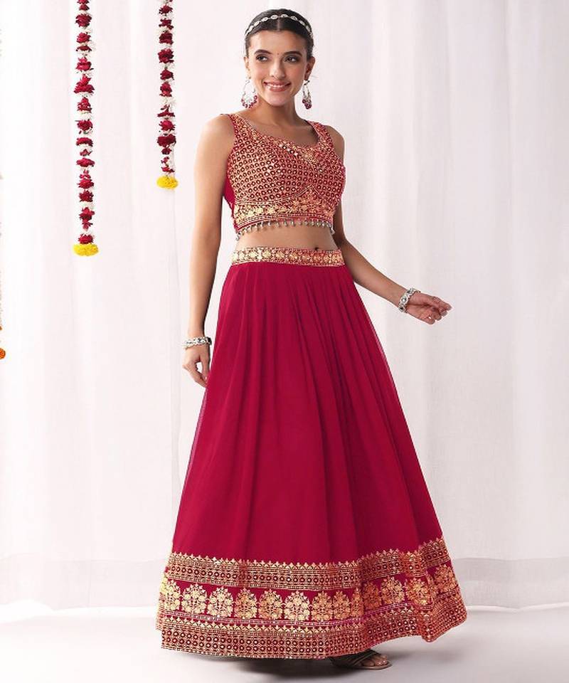 | Product Name | Floral Embroidered Sequinned Georgette Lehenga Tasselled Choli With Dupatta | |