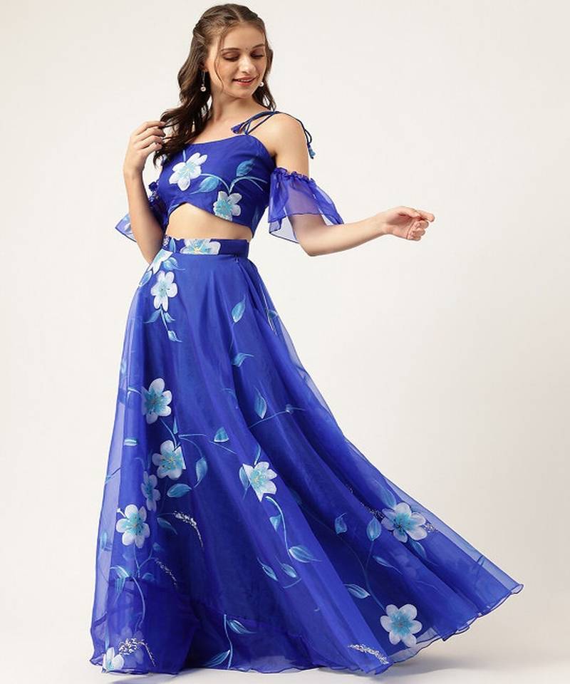 | Product Name | Floral Hand Paited Organza Ready To Wear Lehenga & Blouse With Friled Dupatta | |
